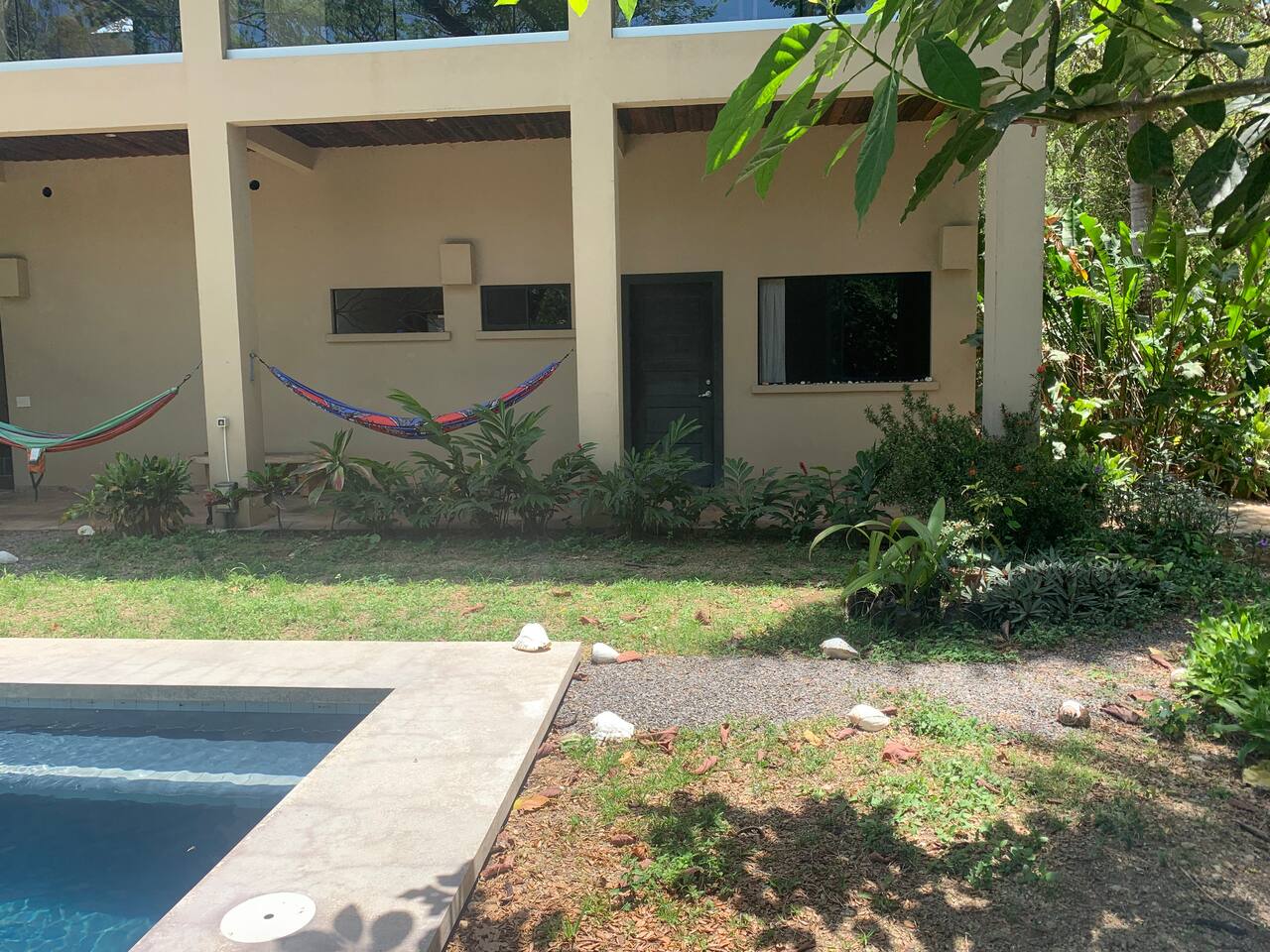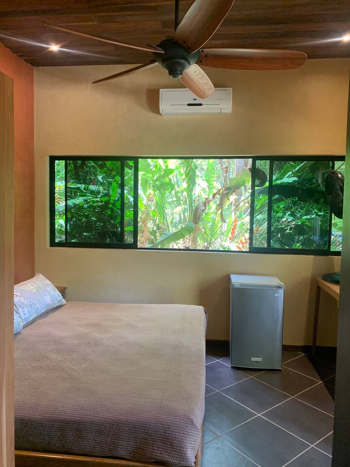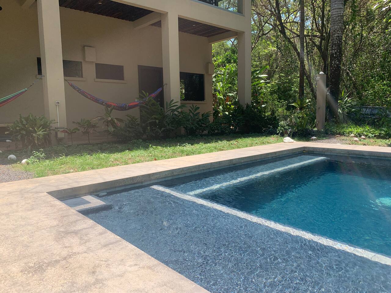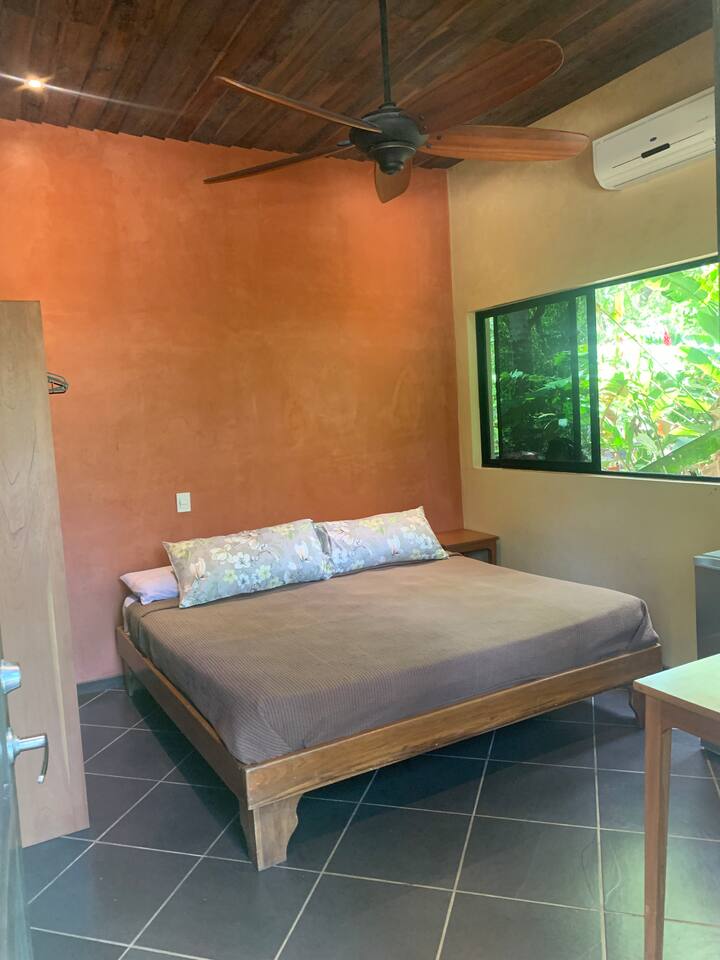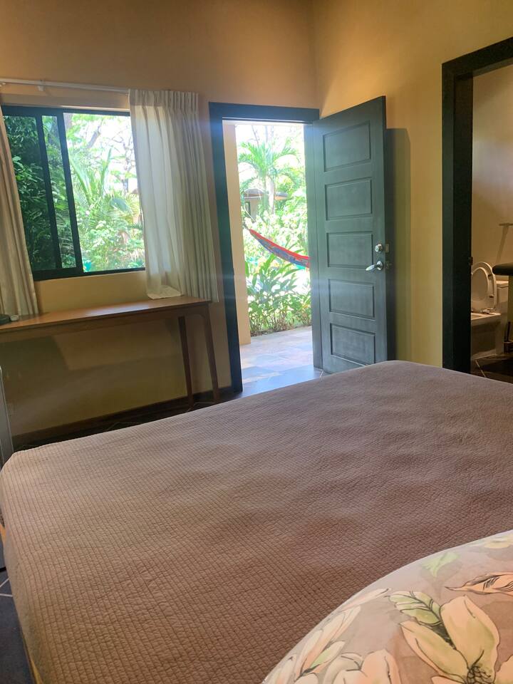 Relax and recharge in your own private suite just steps from the beach. This 1-bedroom space is ideal for couples, solo travelers, or digital nomads seeking a peaceful getaway in the heart of Mal Pais. You’ll have full privacy, your own entrance, a cool, air-conditioned bedroom, and a personal mini fridge for drinks and snacks. Guests have access to two beautiful shared pools, lounge area and a tropical bar. Whether you’re here to surf, work remotely, or simply unwind, this is your home base