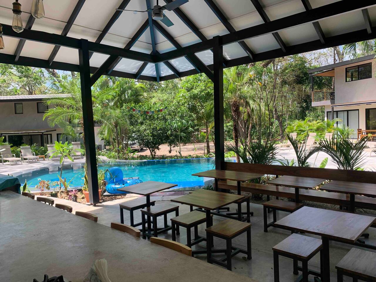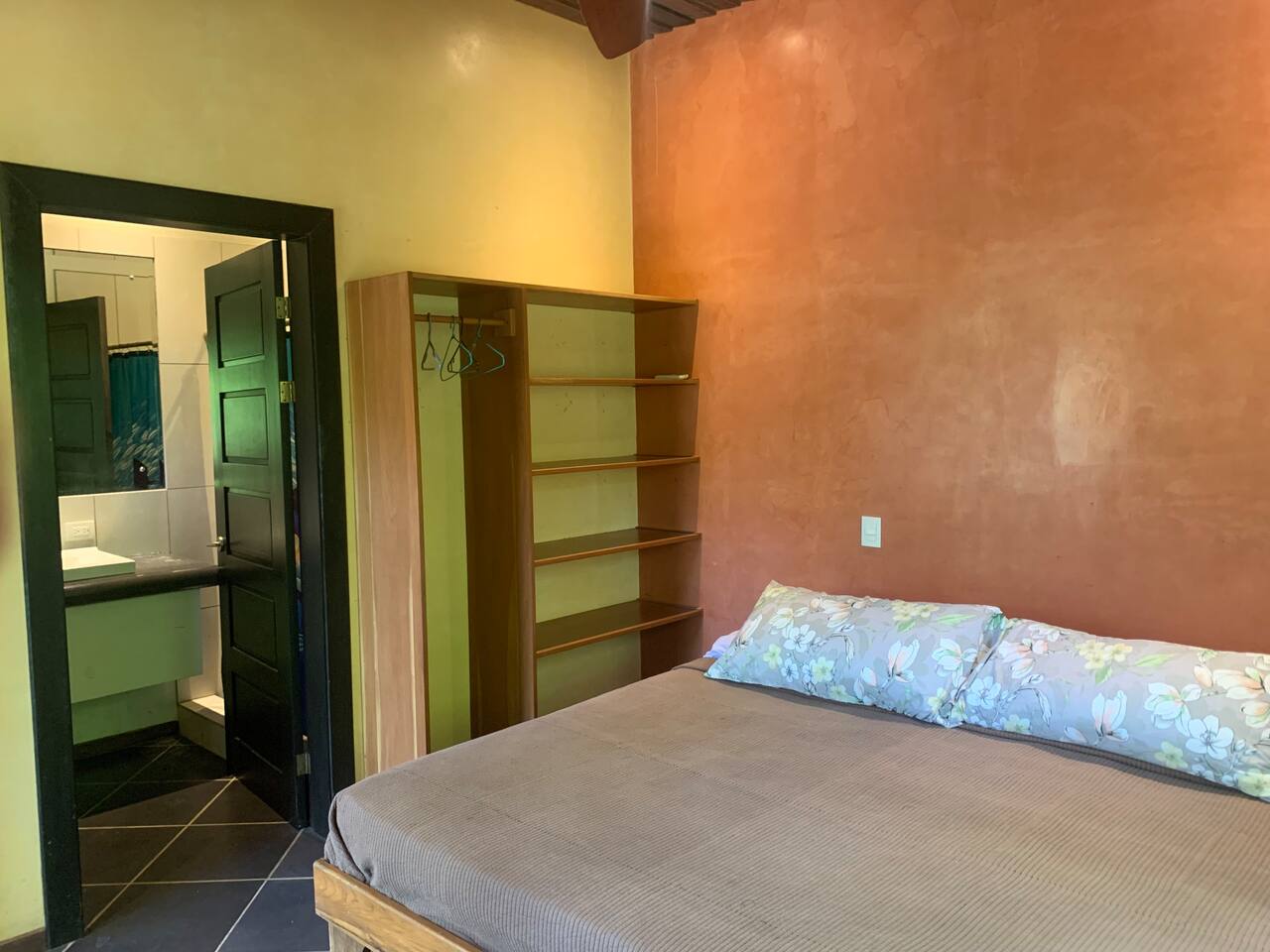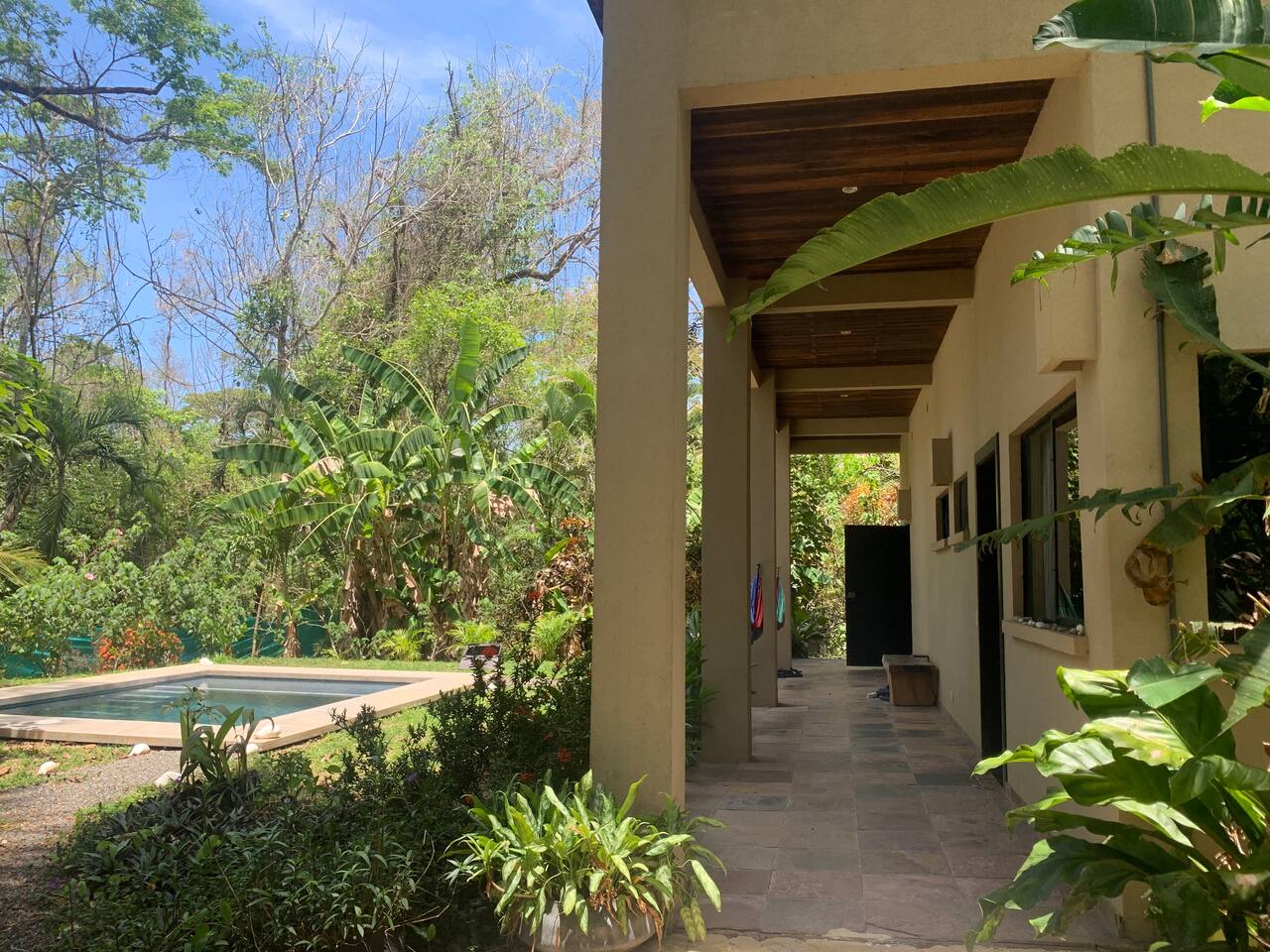 Relax and recharge in your own private suite just steps from the beach. This 1-bedroom space is ideal for couples, solo travelers, or digital nomads seeking a peaceful getaway in the heart of Mal Pais. You’ll have full privacy, your own entrance, a cool, air-conditioned bedroom, and a personal mini fridge for drinks and snacks. Guests have access to two beautiful shared pools, lounge area and a tropical bar. Whether you’re here to surf, work remotely, or simply unwind, this is your home base