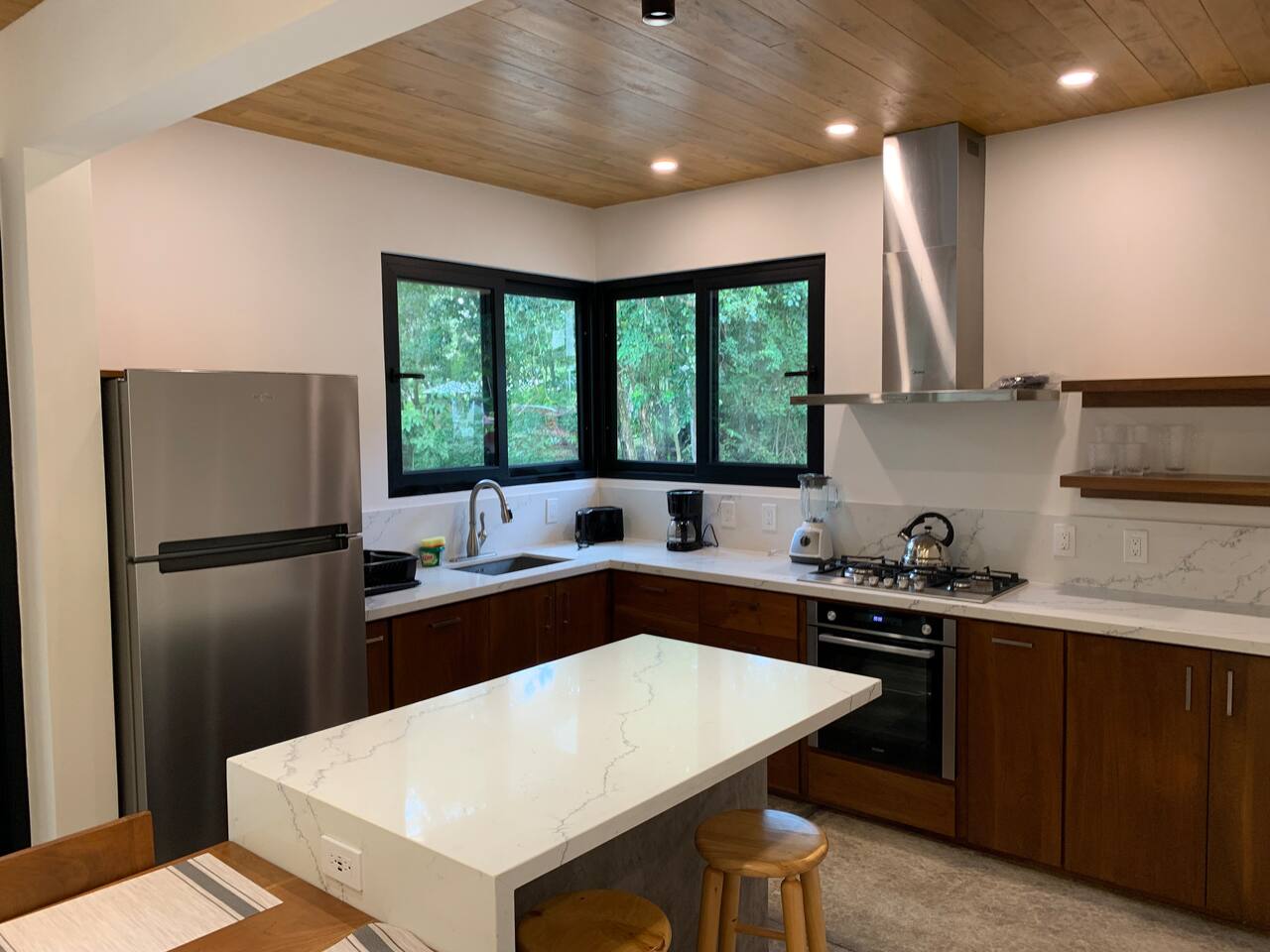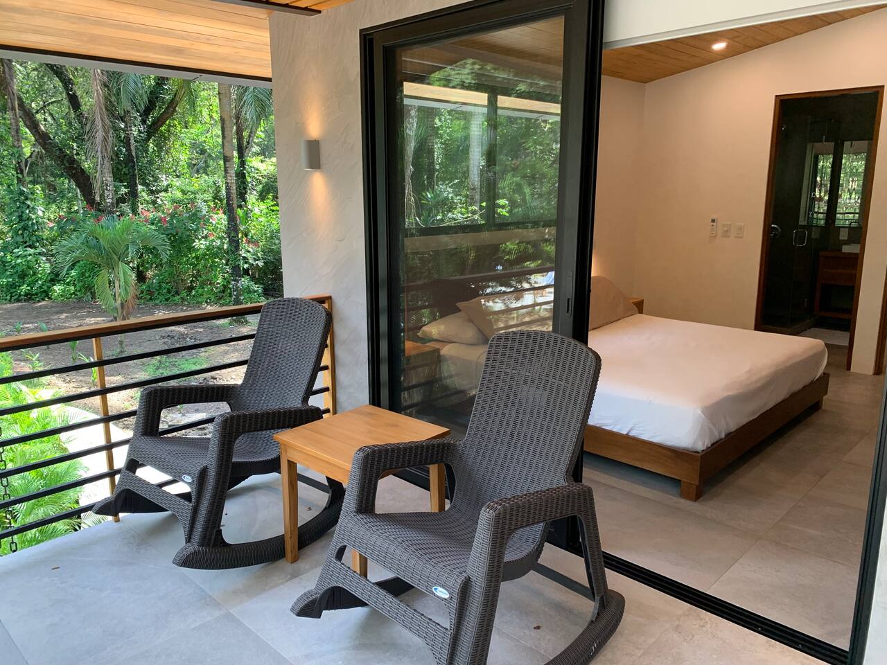 Awake each morning to the sound of waves crashing on Playa Mal Pais located right at the entrance of the resort. Alternatively, take a stroll to the nearby 'Secret Beach' nestled within the Cabo Blanco reserve, a true hidden paradise. For water enthusiasts fishing, paddleboarding, sea kayaking, and surfing are just minutes away from the resort. We also provide ocean kayaks for our guests to enjoy. A short walk will lead you to the Mal Pais grocery store, a cafe/bakery, the Tierra Mar restaurant, Pizzeria, 'La Dona", Brewery " La Perra Hermosa", and a soccer field. We’re also next to the charming local fishing village pescaderia where you can buy the local catch of the day and Canopy Tour Mal País, where you can ziplining through the jungle. Casa Wahoo is next to Casa Dorado. Each house has a private terrace. The pool has two large terraces that are shared. All guests have access to the Rancho Bar.