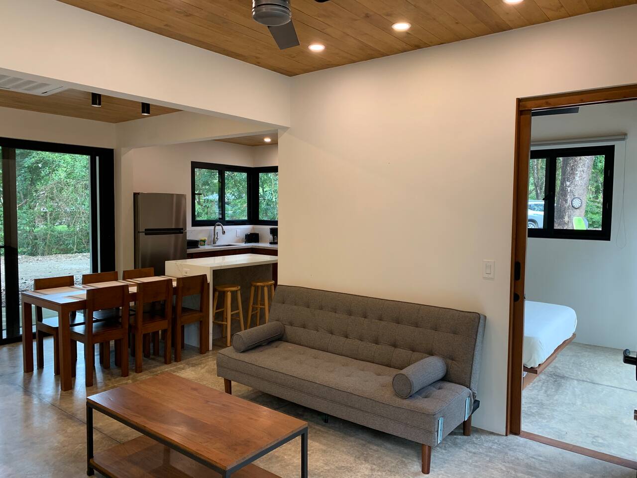 Stay in a private, nature-surrounded property in Mal País with a large shared pool, sun decks, and rancho bar. This spacious 3-bedroom apartment includes a private terrace and a calm end-of-road location near the Pacific Ocean and Cabo Blanco Reserve. Walk to the supermarket, sodas, pizzeria, brewery, and pescadería. Highlights: Resort pool • Private terrace • Walkable amenities • Quiet location • Near ocean & reserve