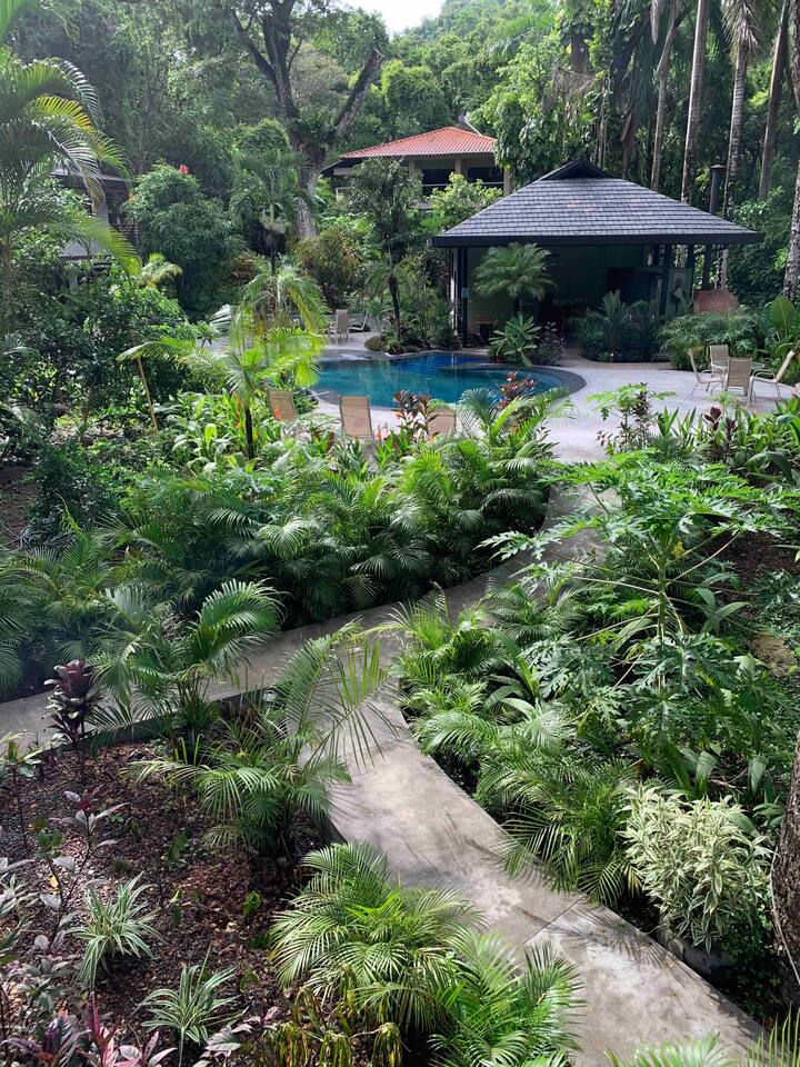Unwind in a peaceful Mal País retreat offering a resort-style shared pool, sun terraces, and rancho bar. This comfortable 3-bedroom apartment features a private terrace and is tucked away in a quiet, nature-filled setting near the Pacific Ocean and Cabo Blanco Reserve. Walk to local food spots, market, brewery, and pescadería. Highlights: Large shared pool • Private terrace • Walk to food & market • Serene location • Close to beaches