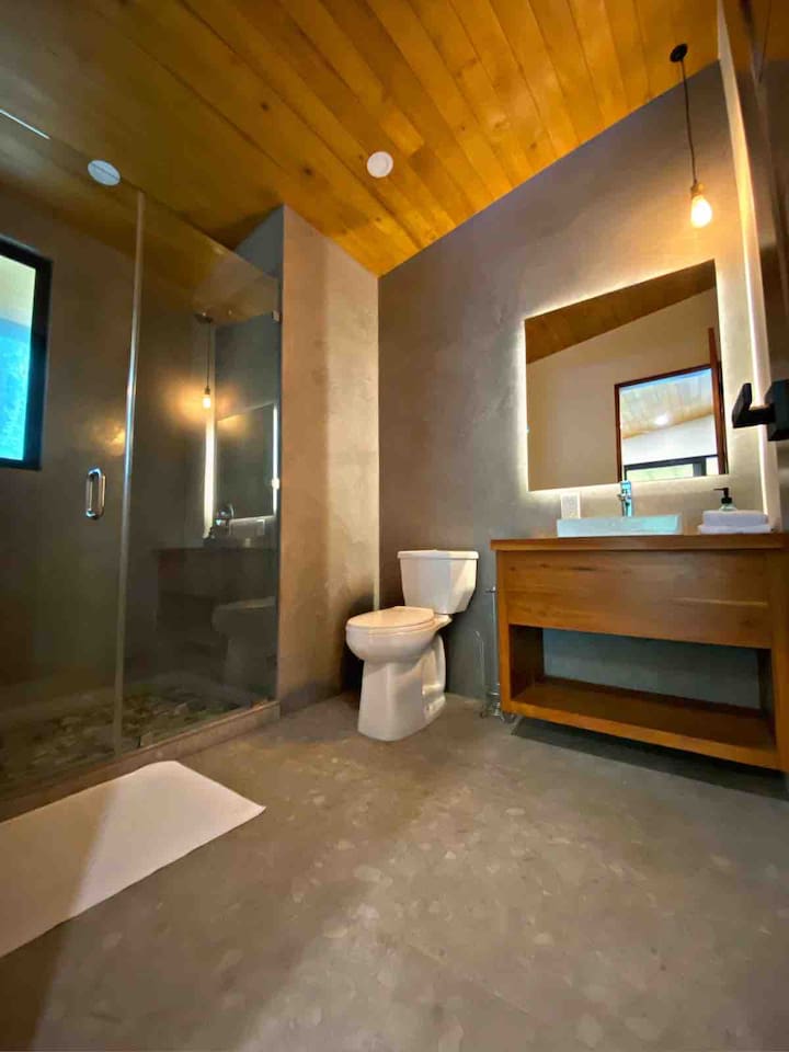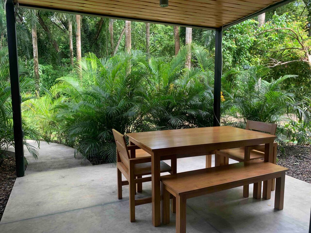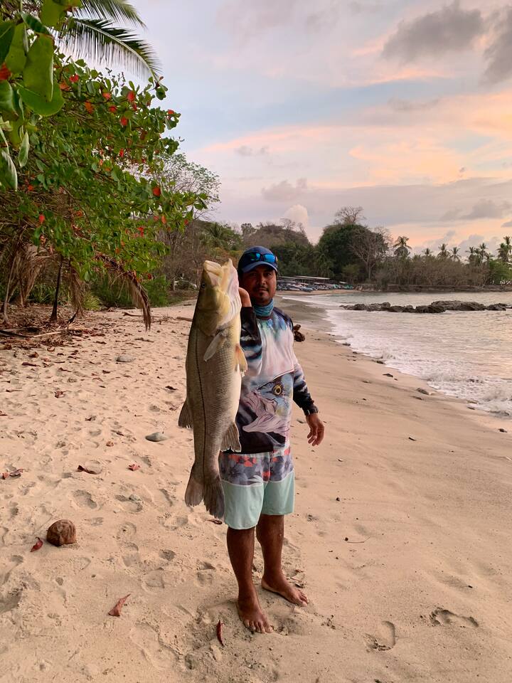 Casa Dorado located in Playa de Pesca resort with 3 bedrooms 2 of those with private bathrooms and balcony. The house has AC and fast internet of 100 mbs. The kitchen is equipped with a refrigerator, gas stove with oven, coffee maker, toast and kitchen utensils (such as plates, glasses, knifes, spoons and forks and among other things) The house has a washing machine and dryer. It has a comfortable living room and sofa bed in case of additional guest. The house is set back on the property and has a jungle feel with lots of wildlife. The beach is 25 meters from the property entrance. Walking distance from the property Mal Pais has a grocery store, Cafe/bakery, restaurant Tierra Mar and Pizzeria. From the property you can walk to the beach, Cabo Blanco reserve, Snorkling, Fishing and SUP paddle boarding. We also have ocean kayaks available.
